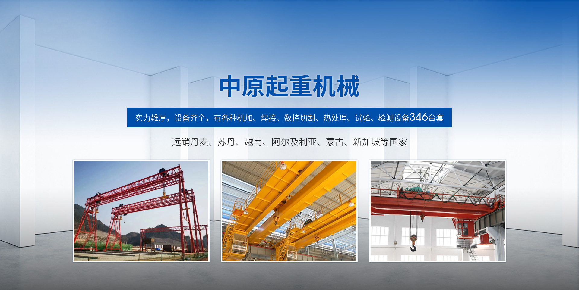 新鄉(xiāng)市中原起重機(jī)械有限公司成立于2000年,地處中原,輻射全國28個省市自治區(qū),設(shè)外埠經(jīng)銷處、辦事處268個。產(chǎn)品行銷工礦、建材、化工、冶金、電力、交通、鐵路、油田、港口等各個行業(yè)。遠(yuǎn)銷丹麥、蘇丹、越南、阿爾及利亞、蒙古、新加坡等國家。  公司實力雄厚,設(shè)備齊全,有各種機(jī)加、焊接、數(shù)控切割、熱處理、試驗、檢測設(shè)備7臺;有機(jī)加工、熱處理、單、雙梁橋門機(jī)生產(chǎn)、檢測、安裝等9個車間,研究中心、運(yùn)輸公司、安裝維修服務(wù)公司等機(jī)構(gòu),?  主要產(chǎn)品有:LD型1~20噸電動單梁起重機(jī)系列產(chǎn)品;5~600噸通用橋式、門式、冶金、上旋轉(zhuǎn)下旋轉(zhuǎn)電磁吊、絕緣、抓斗、防爆起重機(jī)系列產(chǎn)品;LH3~100噸葫蘆雙梁系列產(chǎn)品;MH5~32噸葫蘆門式系列產(chǎn)品;0.5~40噸CD1、MD1鋼絲繩電葫蘆系列產(chǎn)品;HS1型0.5~20噸手動葫蘆系列產(chǎn)品;0.5~10噸環(huán)鏈電動葫蘆系列;0.5~40噸彎道電動葫蘆系列產(chǎn)品;裝卸橋、造船門機(jī)、架橋機(jī)、鑄造吊和水電大噸位起重機(jī)系列產(chǎn)品。  公司建立了強(qiáng)有力的質(zhì)量保證體系和生產(chǎn)過程的質(zhì)量控制系統(tǒng),嚴(yán)格執(zhí)行國家設(shè)計、生產(chǎn)標(biāo)準(zhǔn),有嚴(yán)格的生產(chǎn)工藝過程和標(biāo)準(zhǔn),嚴(yán)格的檢驗、檢測標(biāo)準(zhǔn)和手段。